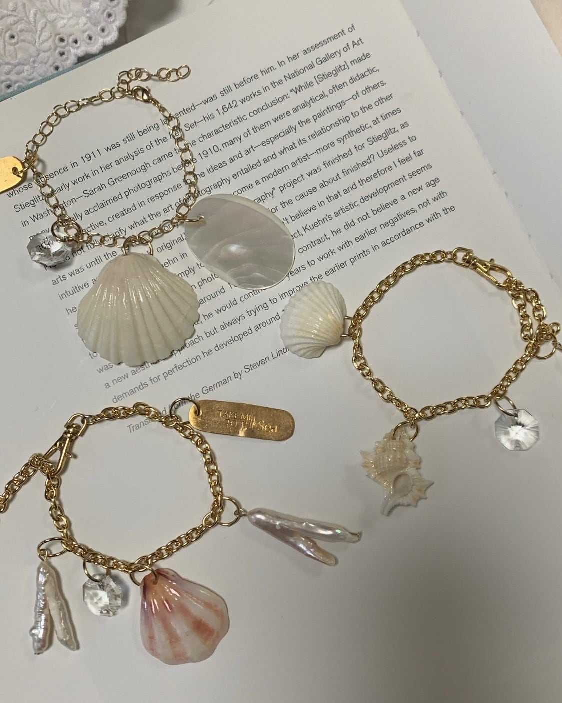 貝やビーズ、パール、シャンデリアガラス