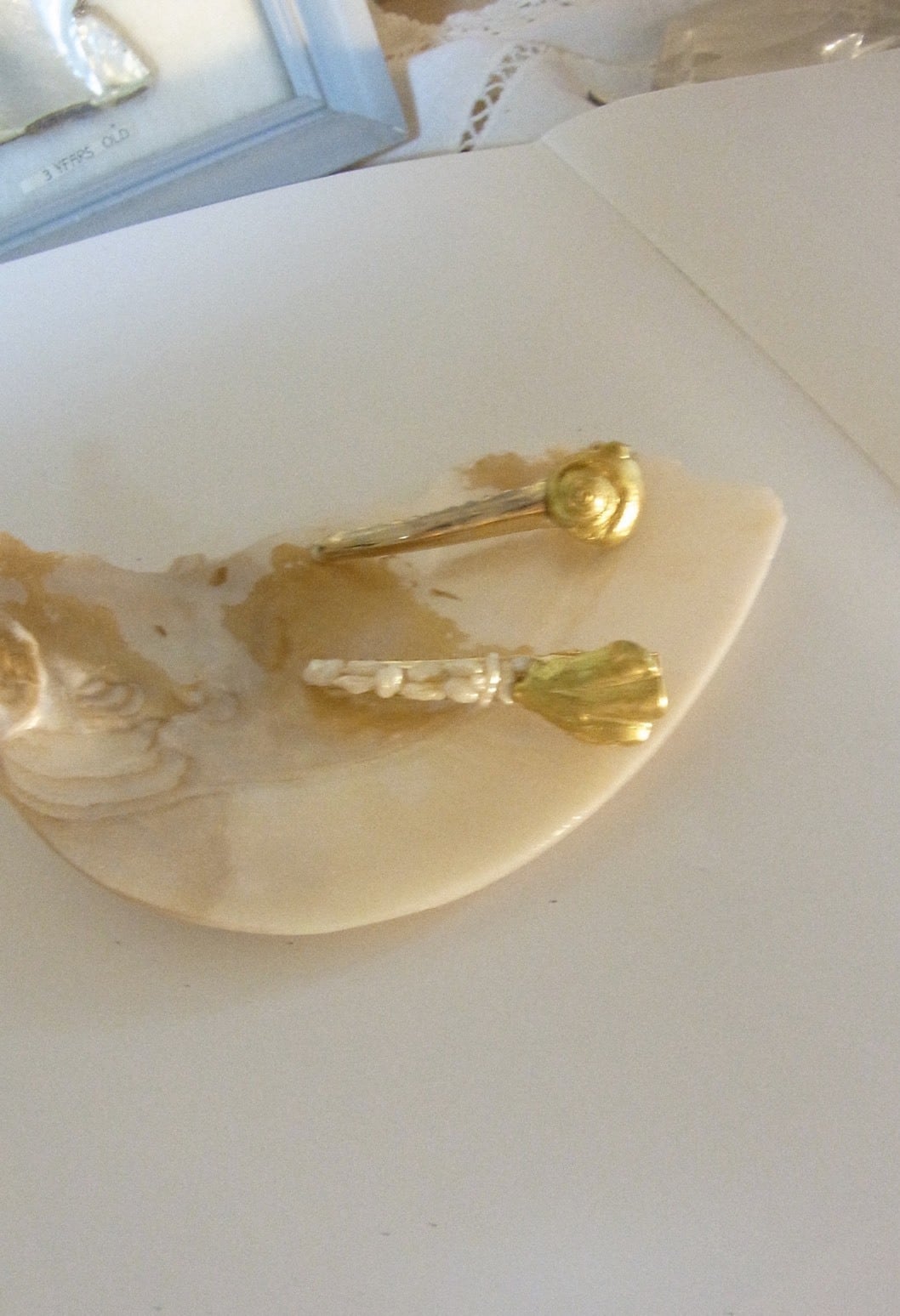 貝殻の型を作り仕上げたヘアピンです。