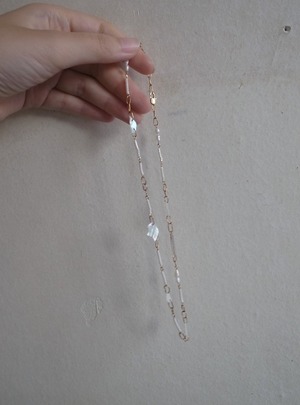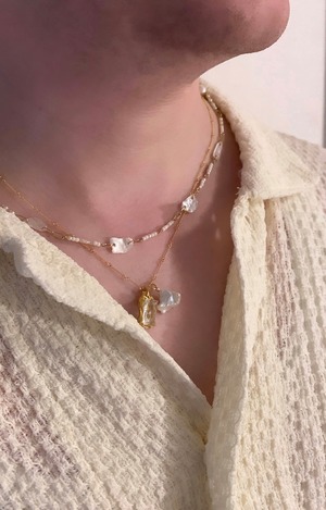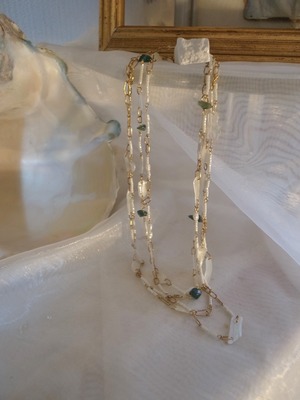 ビーズや淡水パールとつないだネックレスです。
