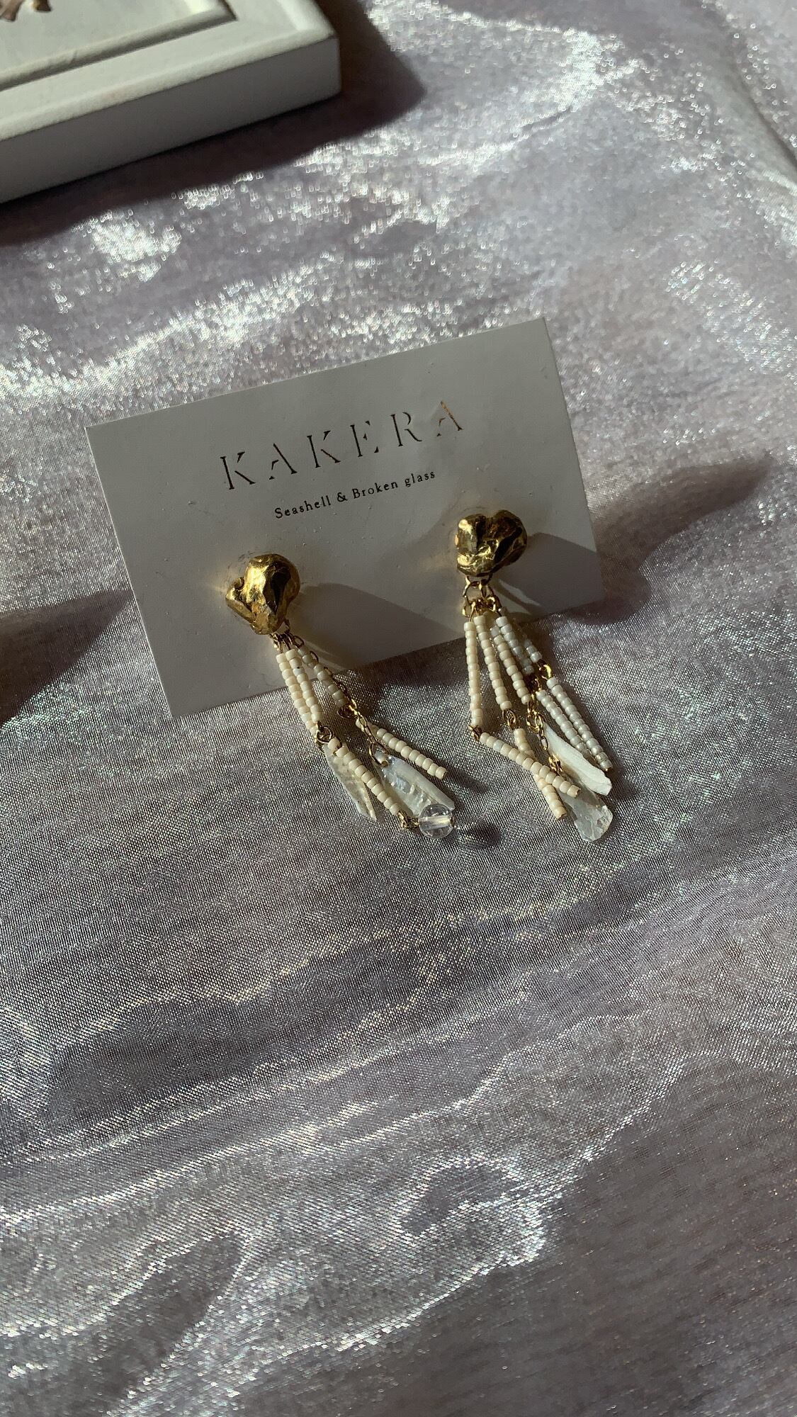 下はビーズ、貝殻、淡水パール、水晶を使用しています。(取り外し可能です)