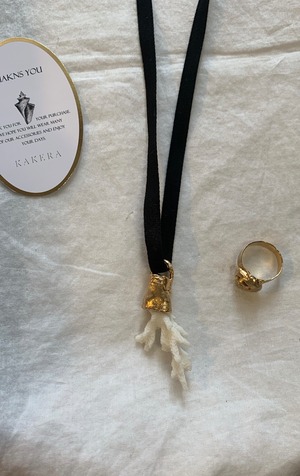 Material•linen ribbon ,coral ,brass